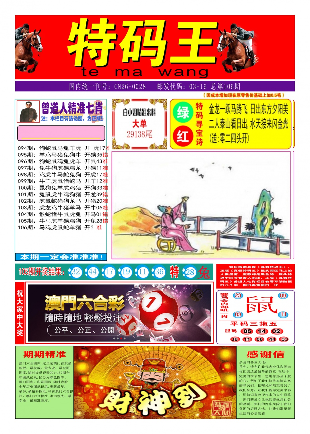 106期: ※两波中特※ 【红波绿波】 开 ?? 准